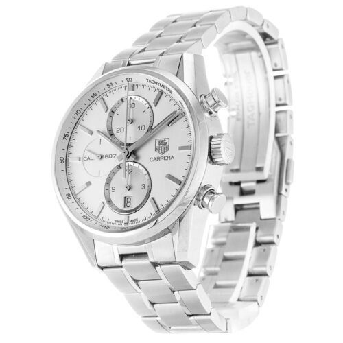 The Classic men replica Tag Heuer Carrera CAR2111.BA0720 silver dial chronograph steel watch is a trusted and stylish companion that you will never want to leave your side. Then by stainless steel case with a stainless steel bracelet. Silver dial with luminous hands and index hour markers. Date display at the 6 o’clock position. Chronograph – three sub-dials displaying: 12 hours, 30 minutes and 60 seconds sub-dials. Quartz movement and scratch resistant sapphire crystal. Case size 43 mm. So this watch is a must-have for your collection.