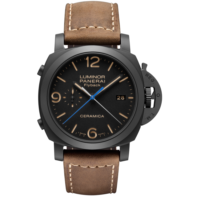 Functions:Hours, minutes, small seconds, chronograph flyback, seconds reset