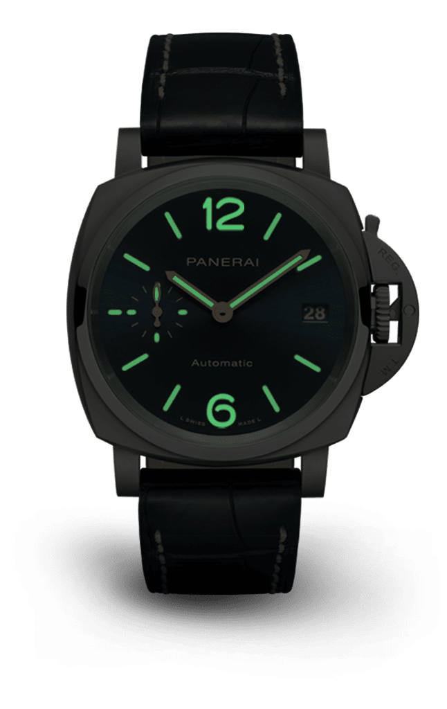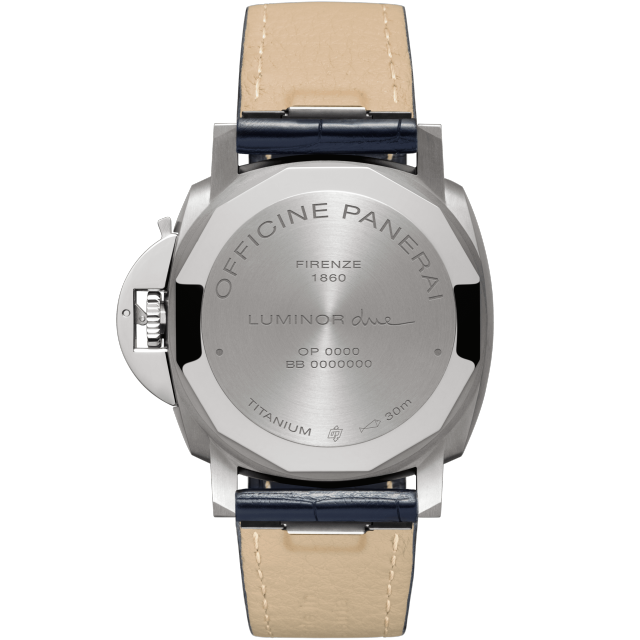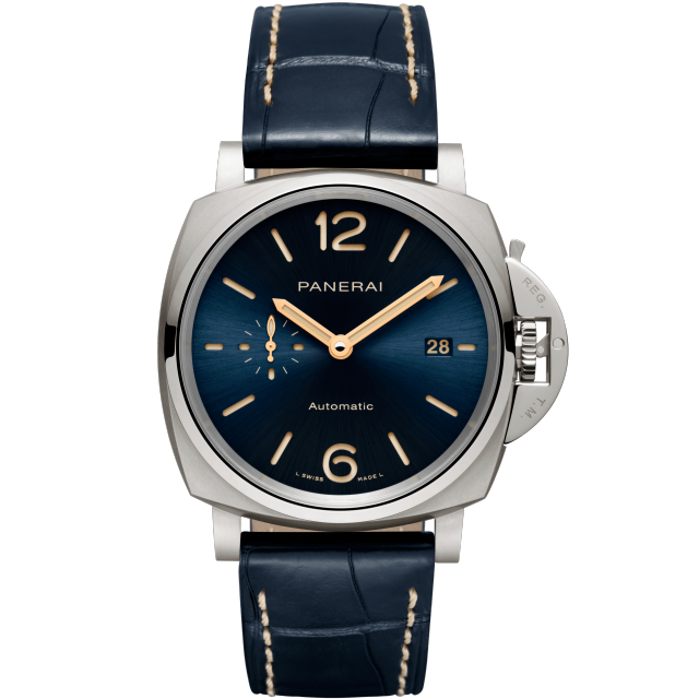 Dial:Blue sun-brushed with luminous Arabic numerals and hour markers. Date at 3 o’clock, small seconds at 9 o’clock