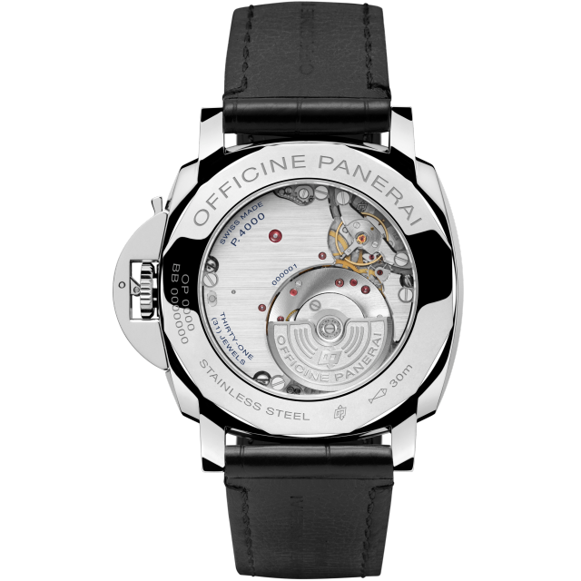 Movement:Automatic mechanical, P.4000 calibre,13¾ lignes, 3.95 mm thick, 31 jewels, Glucydur balance, 28,800 alternations/hour. KIF Parechoc anti-shock device. Power reserve 3 days, two barrels. 203 components. Off – centered oscillating weight
