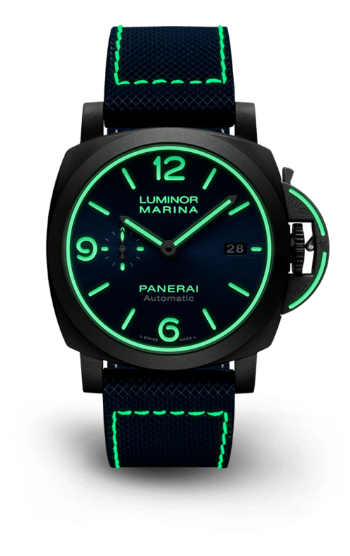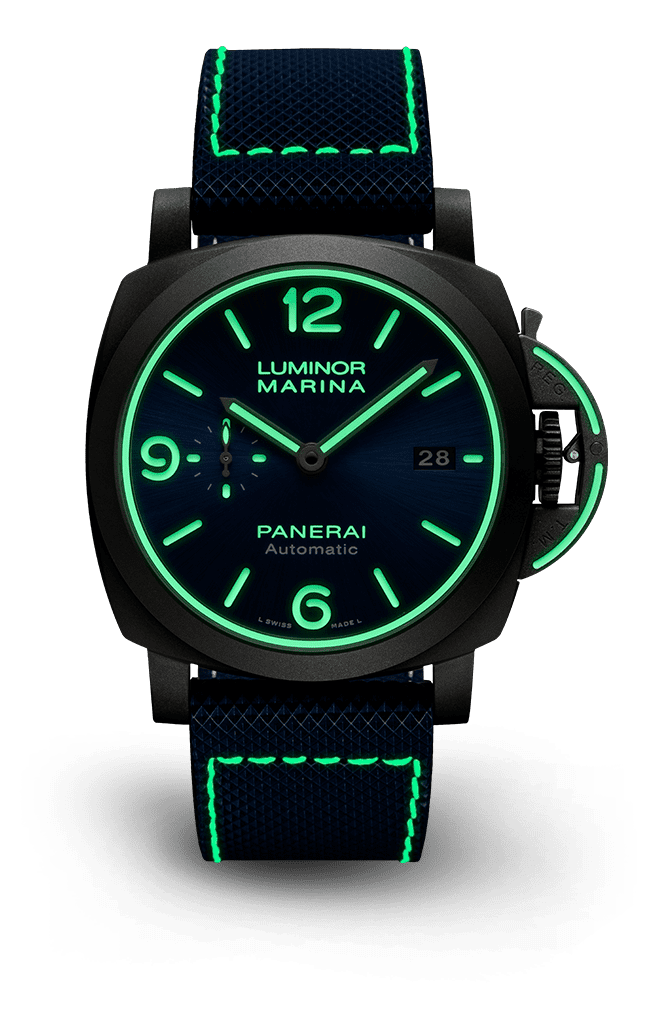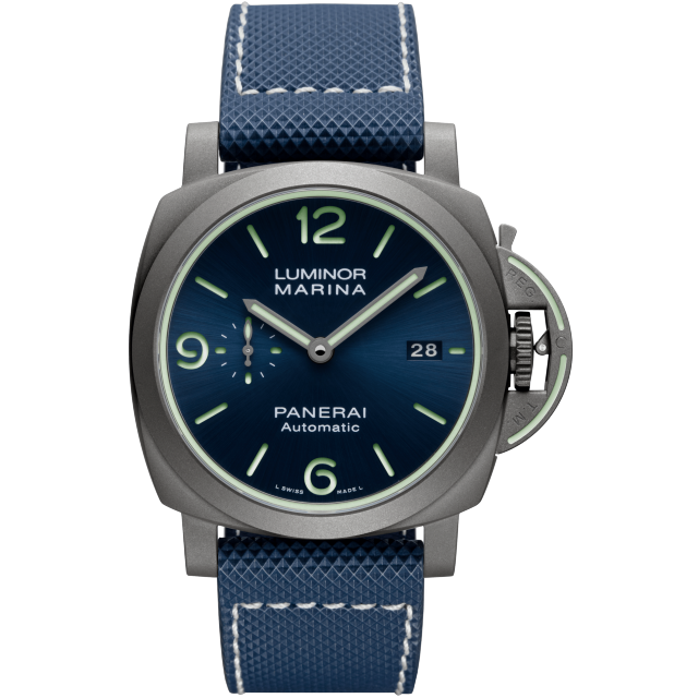 Dial:Blue sun-brushed with luminous Arabic numerals and hour markers. Date at 3 o’clock and small seconds at 9 o’clock
