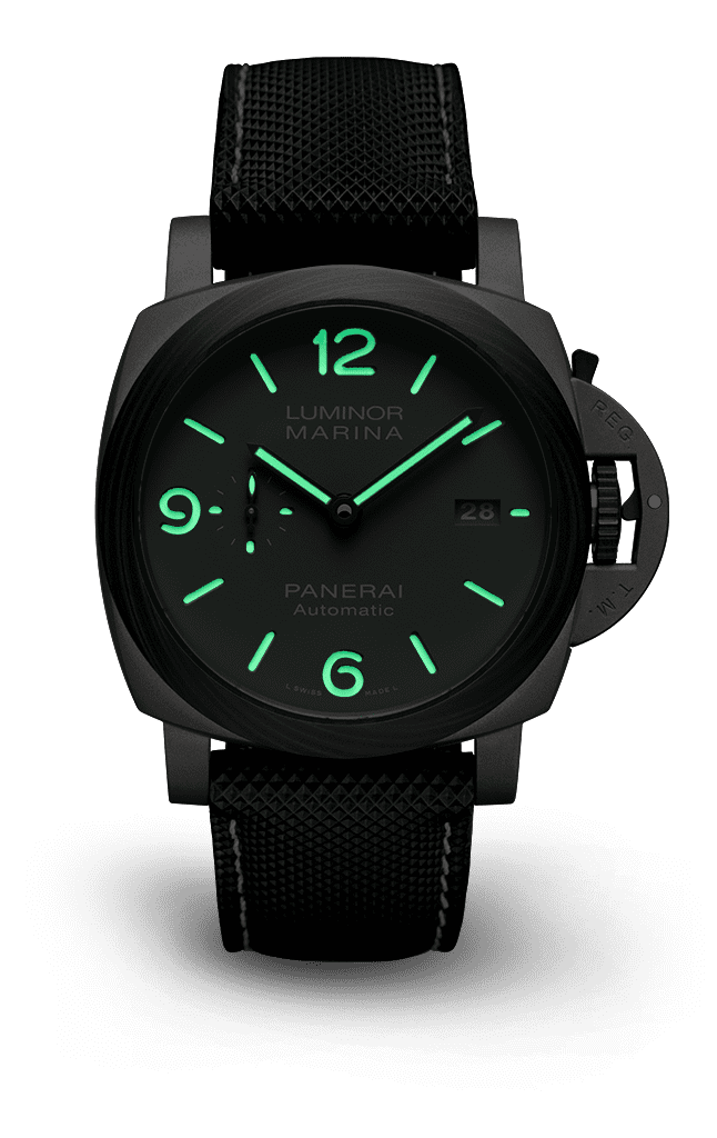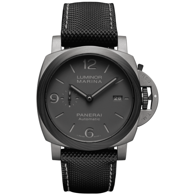 Dial:Anthracite with luminous Arabic numerals and hour markers. Date at 3 o’clock and small seconds at 9 o’clock