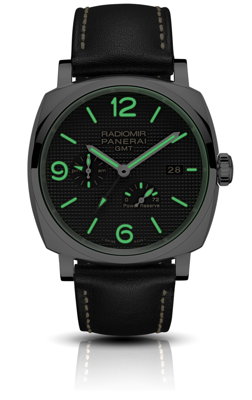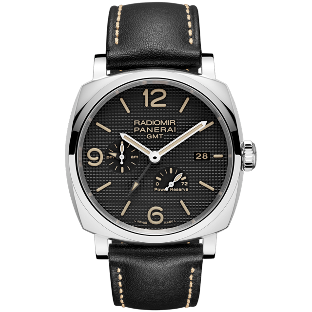 Functions:Hours, minutes, small seconds, date, GMT, 24h indicator, power reserve indicator, seconds reset
