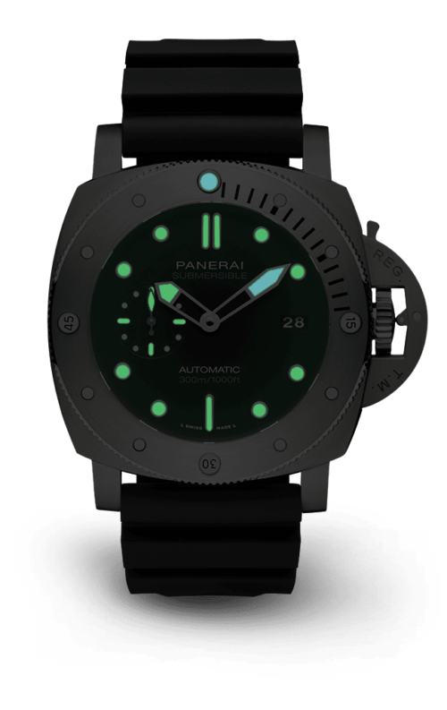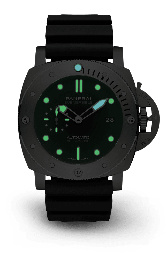Dial:black with luminous hour markers and dots. Date at 3 o’clock, seconds at 9 o’clock