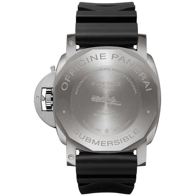Bezel:Brushed titanium with polished edges. Anti – clockwise rotating bezel with graduated scale